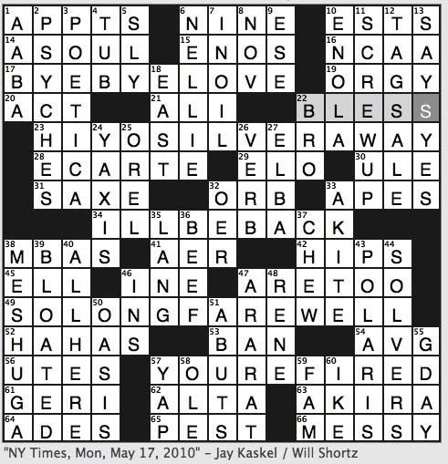 Rex Parker Does The Nyt Crossword Puzzle Parting Words From Von Trapps Mon 5 17 10 Mount Where Noah Landed Fully Focused Attentive Suffix With Labyrinth